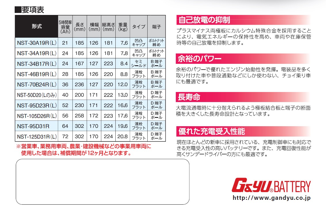G&Yu NST-70B24R(65B24R,60B24R,55B24R,46B24R,互換)充電制御車対応  グローバルユアサ バッテリー  (NST-70B24R)